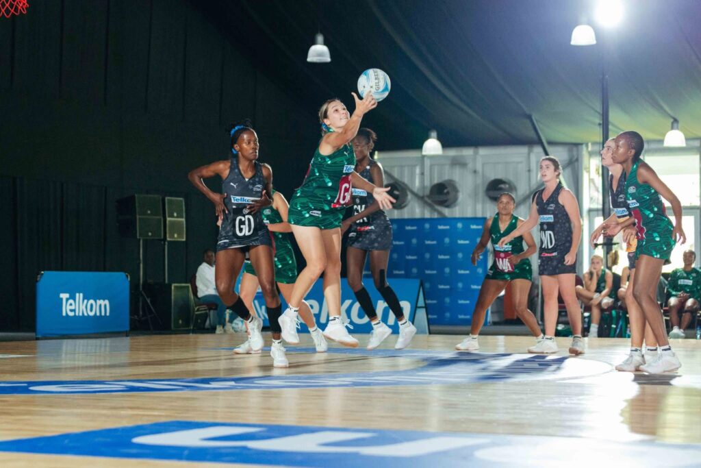 Nxele in action during a match in the Telkom Netball League.